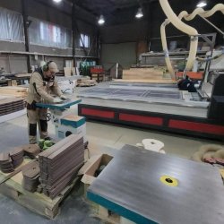 На новом участке трудятся 15 человек — плотники, столяры, маляры. В производстве используется клеёный брус из хвойных пород (лиственница, сосна, ель). Технологический цикл организован с нуля: от шлифовки заготовки до покраски на автоматической линии с последующей упаковкой и маркировкой. Ежемесячно отгружается 5–6 фур готовой продукции. Игровые комплексы из натурального массива древесины поставляются в Серпухов, другие города Подмосковья, регионы России, а также в Казахстан.