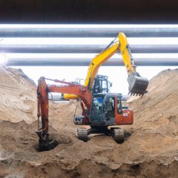 «Параллельно с разработкой грунта котлована во втором вестибюле продолжаются монолитные работы в эскалаторном тоннеле. Сейчас там уже смонтировали свыше 600 кубометров бетонных конструкций, завершается устройство плит перекрытия. Проектом предусмотрено использование 110 плит, изготовленных на отечественных предприятиях. В наклонных тоннелях такие плиты используются для создания перекрытий с последующим монтажом на них эскалаторного оборудования. Они производятся из тяжелого бетона, обеспечивая высокую нагрузочную способность», – рассказал генеральный директор АО «Мосинжпроект» Максим Гаман.