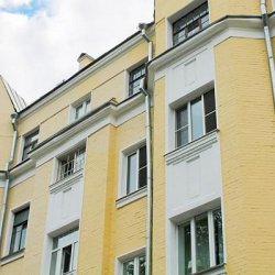 В этом году специалисты Фонда капитального ремонта Москвы завершают работы по обновлению пятиэтажного здания с фронтонами в Панфиловском переулке (дом 1/16, строение 1). Здесь декоративные фронтоны добавлены на уровне первого этажа.