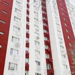 Подготовительные работы начали с расчистки и промывки открытых плоскостей. Далее нанесли грунтовку на поверхности и сделали набивку кронштейнов для кондиционеров и корзин под них. Затем установили утеплитель из минеральной ваты, оштукатурили его базовым слоем и закрепили сетки из стекловолокна. После этого фасады покрыли декоративным слоем и приступили к покраске. Из цветовой палитры выбрали оттенки «сигнальный белый» и «красный шпон макоре».