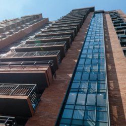 Жилой комплекс возведен с использованием современной технологии вентилируемого фасада, обеспечивающей комфортную температуру в квартирах в любое время года. Корзины для кондиционеров на доме гармонично интегрированы в общий дизайн.