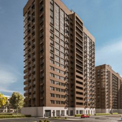 Новостройку возвели по индивидуальному проекту. Ее отличительная черта – светлая арочная конструкция, невесомо соединяющая три корпуса. Белоснежные арки гармонично продолжают витражное остекление первого этажа. Они служат границей между внутренним пространством для отдыха и внешней инфраструктурой, в то же время обеспечивая их связь для комфорта безбарьерного передвижения жителей. Фасады новостройки облицованы бетонной плиткой, хризотилцементными и фиброцементными панелями в природных оттенках.