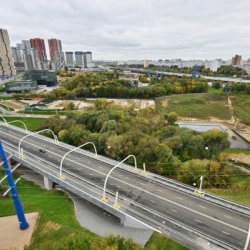 Помимо этого, удалось связать Мосфильмовскую улицу с Южной рокадой за счет возведения двух мостов общей протяженностью 465 м через реку Раменку. С них открывается вид на ландшафтный заказник и прилегающую территорию.