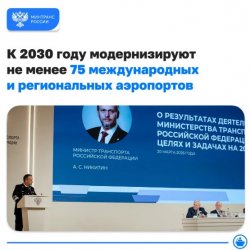 Глава Минтранса Андрей Никитин на заседании итоговой коллегии ведомства сообщил о развитии аэропортовой сети в рамках нацпроекта «Эффективная транспортная система». К 2030 году планируется модернизировать не менее 75 международных и региональных аэропортов, включая строительство новых терминалов.