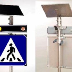 Устройство устанавливается на нерегулируемых пешеходных переходах, работает автономно от солнечной батареи, не требует дополнительных расходных материалов и технического обслуживания.